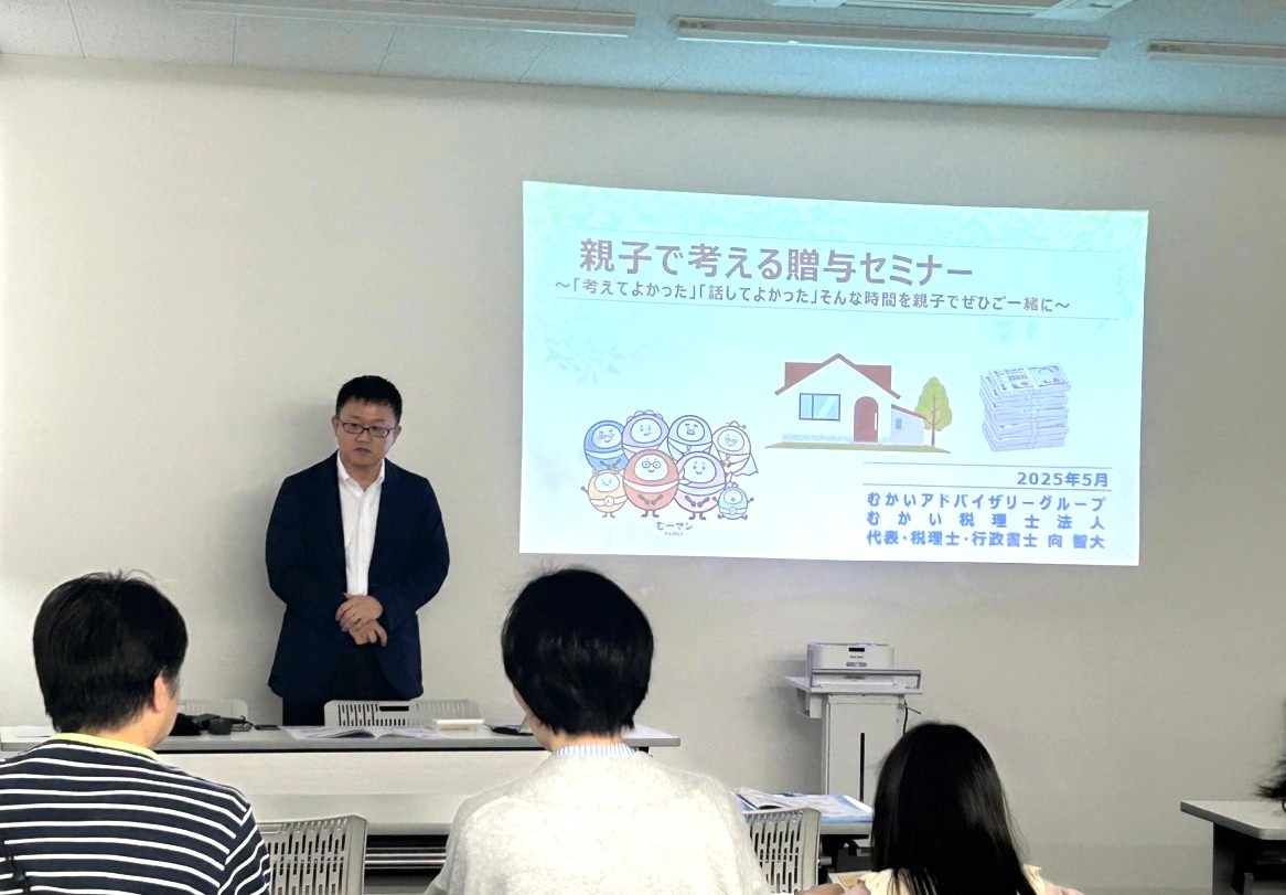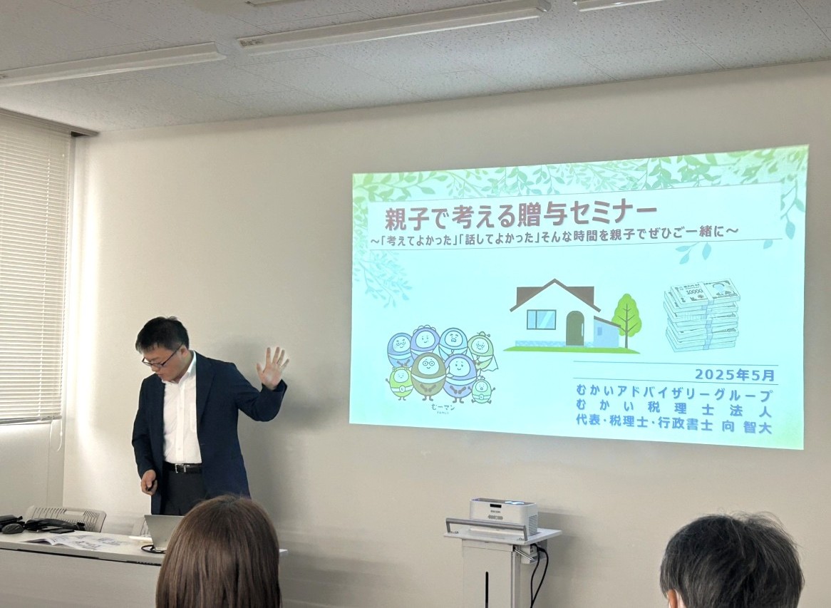今回、「親子で考える贈与セミナー」というテーマで講話をさせていただきました。将来の相続に備え、今から親子で贈与について話し合うことの大切さを、税務の視点から具体的な制度や事例を交えながらご紹介しました。