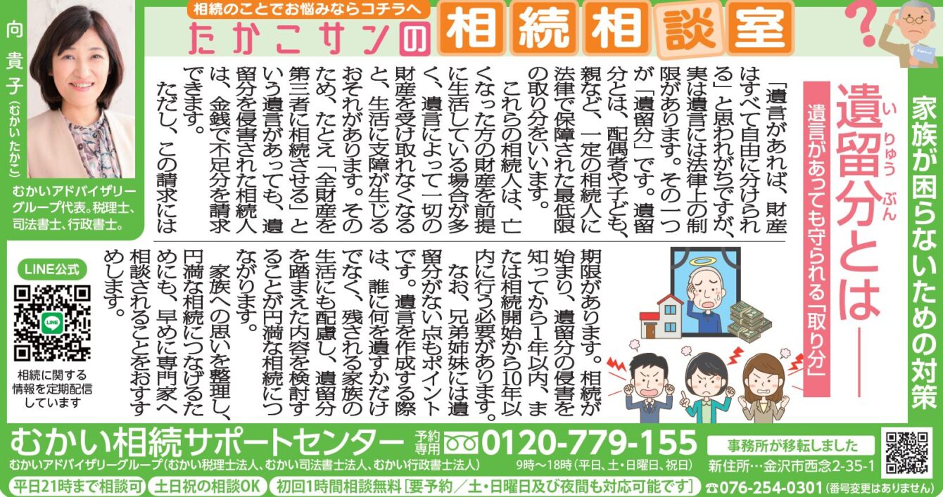 北國新聞(2026年2月18日朝刊)に、弊社税理士・司法書士の向貴子による「たかこサンの相続相談室」のコラムが掲載されました。