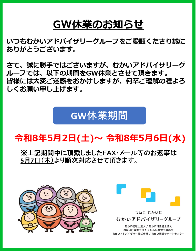 令和8年 GW休業のお知らせ