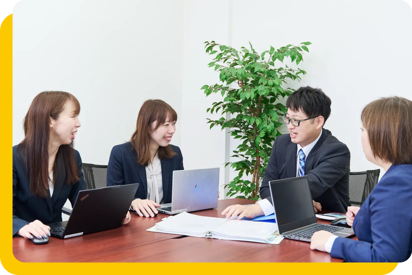 ■勉強会や研究会 法改正や最新の法律や税務情報を共有するため、社内勉強会を定期的に開催しています。 ■コミュニケーションの場 社内SNSや懇親会を通じて、部署を超えた交流を行い、知識や情報を共有できる場を提供しています。 ■メンター制度 新入社員や若手社員には、経験豊富な先輩社員がメンターとして付き、業務やキャリアの相談ができる環境を整えています。